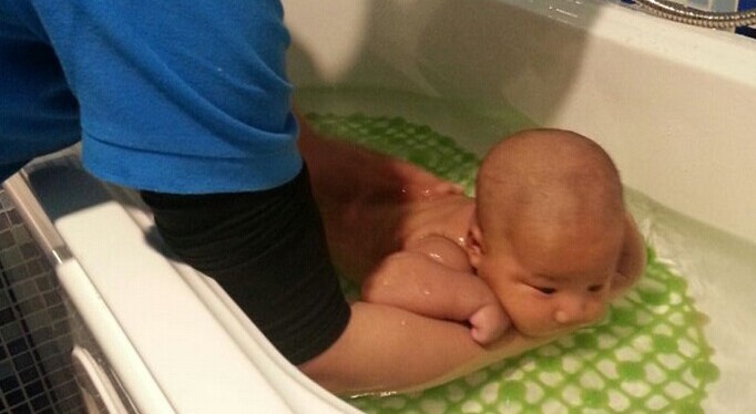 1、逐渐让宝宝习惯于水在他们的耳边流过、水从头顶流下,水从眼前流下……